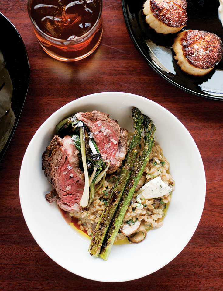 Hickman’s preparations of tender seared scallops, meats (think a beautifully marbled rib-eye steak, fat nicely rendered, served alongside farro risotto and ramps), and pasta (pappardelle with fresh English peas, mint, and ricotta) always reflect the season. He doesn’t shy away from the unconventional — he’ll experiment, for example, with unexpected flavor combinations, like the sweet cauliflower-and-almond puree and bitter broccoli rabe that currently accompanies the scallop entrée.